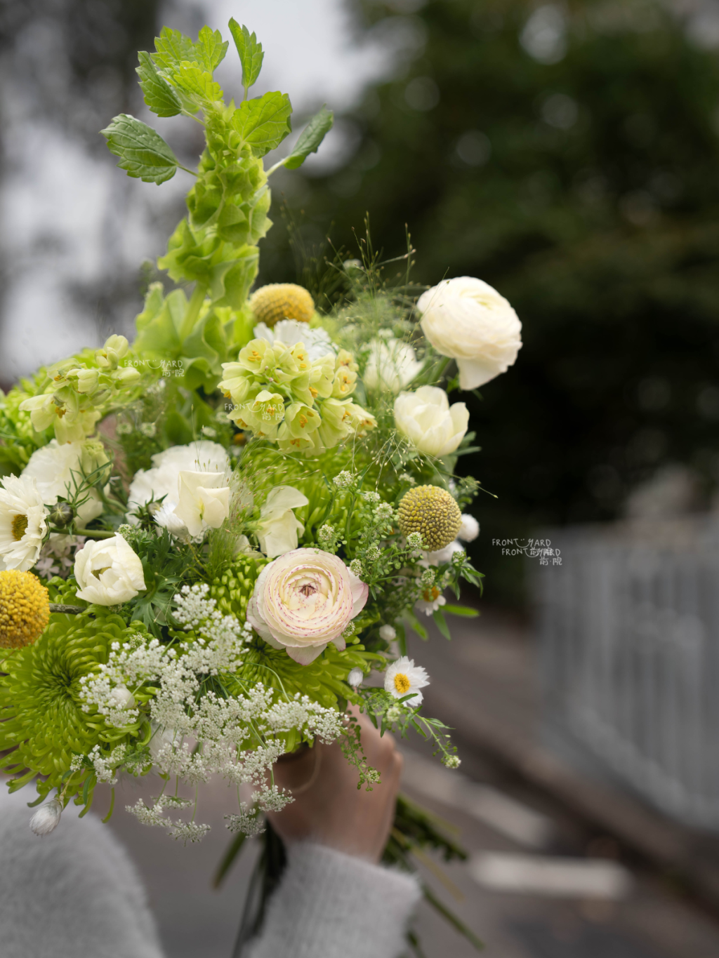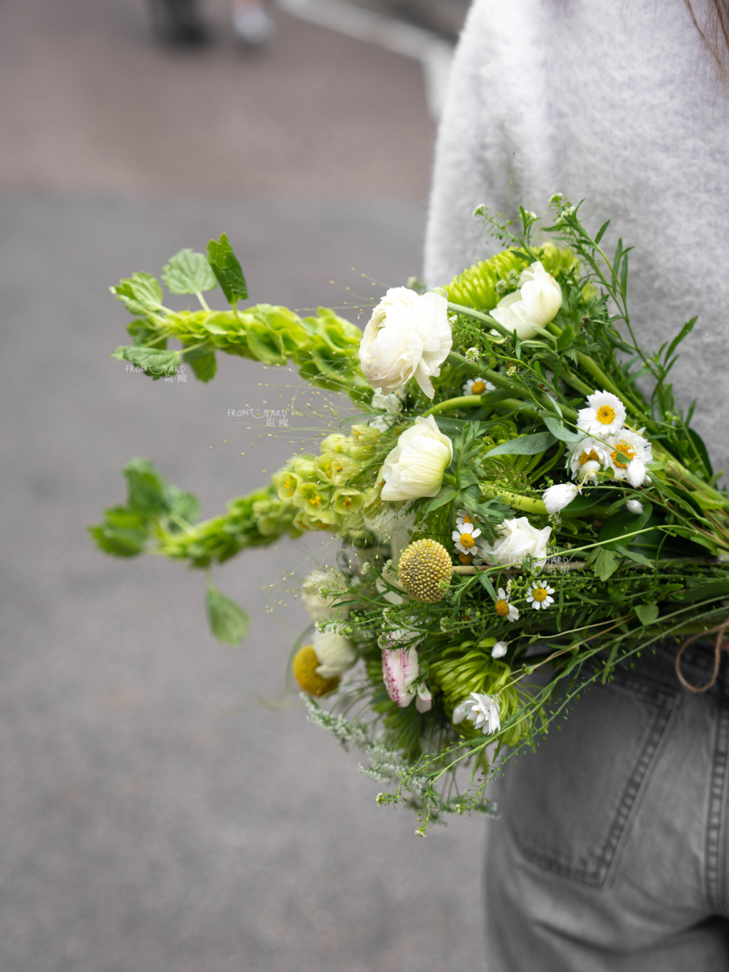 設計上我們重視「空氣感」與「流動線條」。Boreas 不追求刻意的正圓,而是以自然手捧的方式收束,保留輕微不對稱,令外輪廓更像在呼吸。線條向外延伸得很放鬆,步伐之間彷彿會跟著微微轉動。不同質感以漸進方式排列,讓每個角度都能讀到連貫的綠色故事。整體氛圍清爽、冷靜、低調卻有力量,無論極簡婚紗、戶外證婚或城市婚禮都能自然融合,並在照片裡呈現柔和而通透的層次。