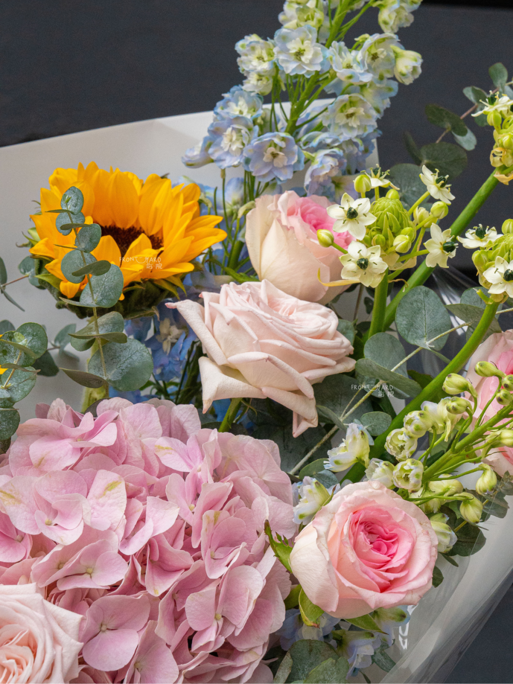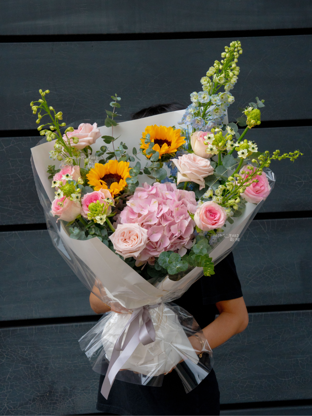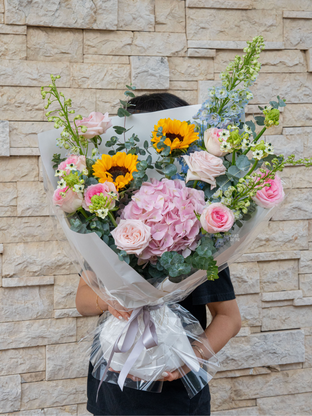 這款迷人的花束完美捕捉了夏天的精髓,以繡球花和向日葵的燦爛組合呈現生命力。柔和的繡球花營造出夢幻的基調,而明媚的黃色向日葵則在整個花束中灑下陽光般的光彩。這種對比鮮明的色彩搭配創造出令人驚艷的視覺效果,繡球花的清涼色調完美平衡了向日葵所帶來的溫暖活力。整體設計既保持優雅又不失輕鬆愜意,適合正式場合和休閒慶祝活動。豐富飽滿的繡球花朵增添了豐盈感和奢華感,而向日葵則帶來了質樸的魅力。這束花既體現了精緻優雅,又洋溢著歡樂氣息,能為擺放處營造出愉悅的氛圍。